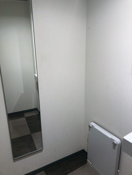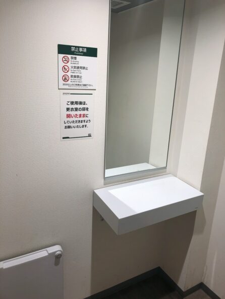 待合室には更衣室もあります。全身鏡・半身鏡がついているほか、着替え台も完備。早朝、身支度を整えたいときに特に便利ですね。ただし1部屋しかないので、他の方のことを考えて利用するようにしてください。