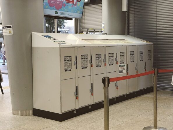前方と後方の2ヶ所にコインロッカーを完備。1つ1つの作りが大きいので、キャリーケースも入れておくことができます。
