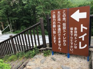 田代橋を渡るか渡らないかで、再びコースが分かれます。私は橋を渡らず、来た道を直進していくことに。なおこちらのポイントには、2つ目の公衆トイレがあるので、忘れずに利用しておきましょう!