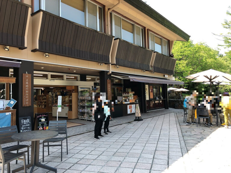 「上高地バスターミナル」が近くにあることもあり、このあたりにはお土産ショップや飲食店が充実。私もベンチに腰掛けて、ちょっぴりひと休みしました。