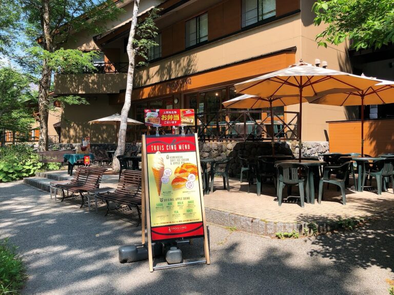 上高地ルミエスタホテルを選んだ理由のひとつは、テラス席でランチができること。もちろんホテル内のレストランでランチコースをいただいたり、アラカルトメニューをいただいたりもできますが、一人で気兼ねなくランチをするにはこちらがうってつけでした。