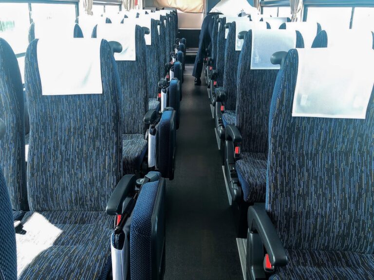 定刻どおり出発!車内の様子はご覧のとおりです。4列シートでUSBポート付き、Wi-Fiも使えます。空調がほどよく効いていて快適です♩お手洗いは最後列にありました。