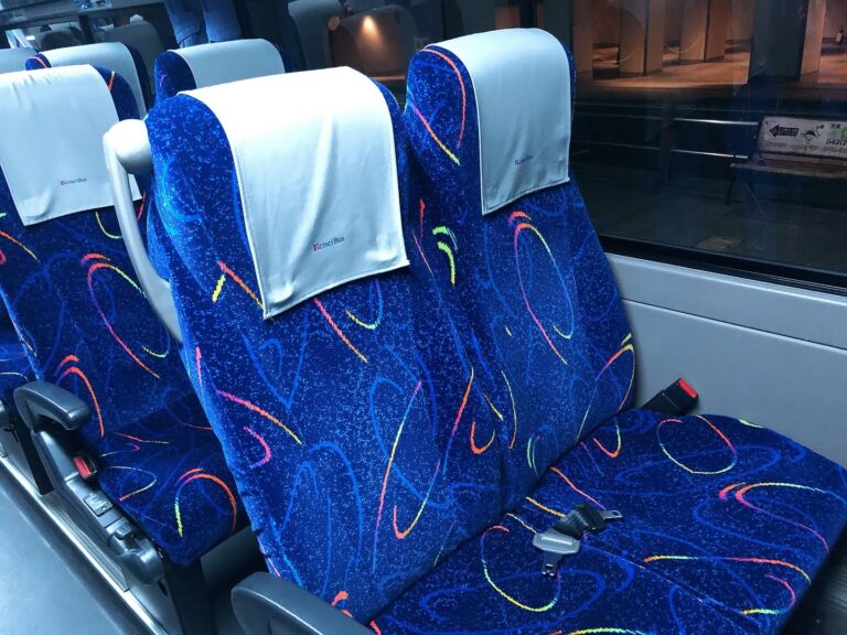 車内はこんな感じ。4列シートで、最後列にお手洗いがあります。