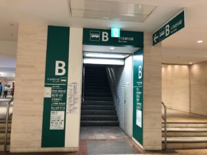 さあ、ここが運命の分かれ道。横浜駅東口には、「横浜駅東口バスターミナル」と「YCAT(横浜シティ・エア・ターミナル)」という、2つの主要ターミナルが存在。今回目指しているのは「東口バスターミナル」なので、斜め上へと向かうエスカレーターに乗りましょう。