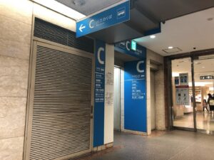 まずは全体像をご紹介。写真のとおり、ATMやトイレといった基本設備はそろっているので安心です。また営業時間内であれば、直結のそごう横浜店で用事を済ませることもできます。