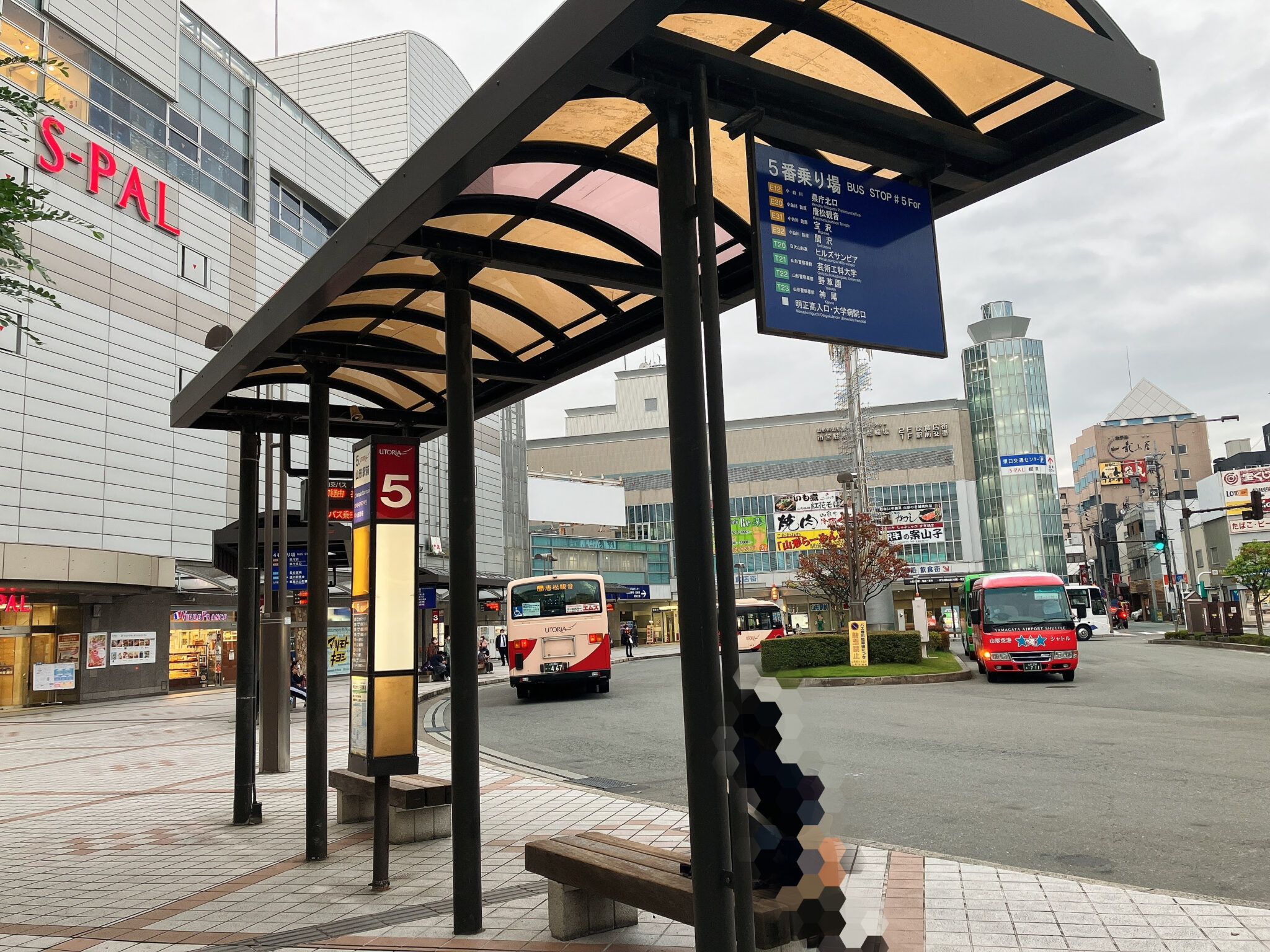 5番のりばからは主に、県庁や大学行きの路線バスが出ています。