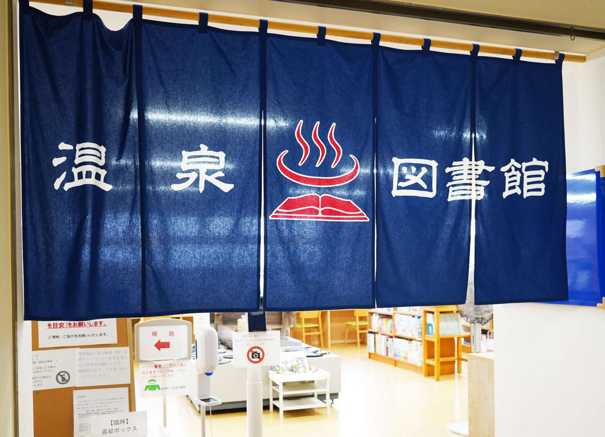 3階には、なんと「温泉図書館」があります。町民も利用する図書館で、2015年にバスターミナルに移転しました。利用料金は無料。本を読みながらバスを待つことができます。