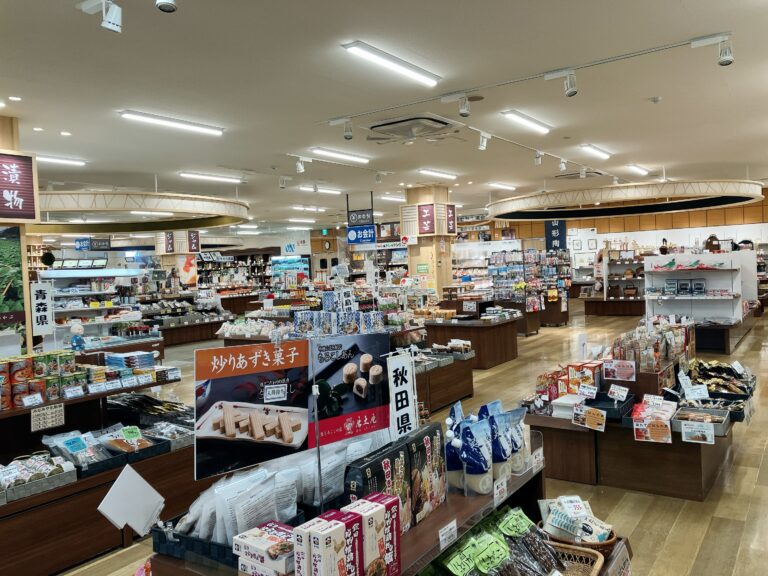 食後は物産エリアへ。フルーツや和菓子、お酒、名産品、特産品、工芸品がたくさん販売されています。