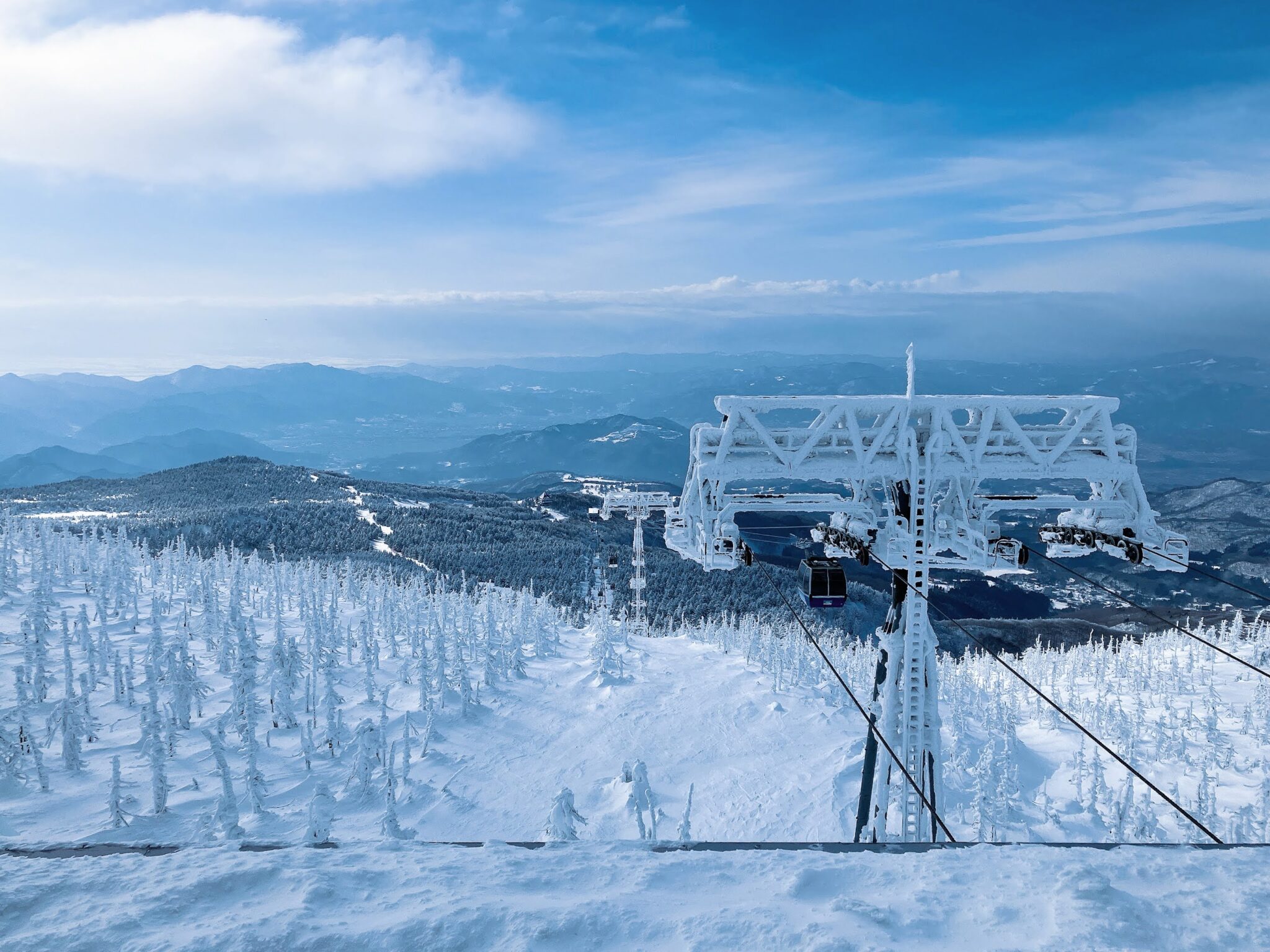 1つ目のロープウェイよりさらに高さを上げながら進んでいきます。木への雪の付き方が変わっていくさまも圧巻。車内の放送がないため、ゴォーッと風が吹き付ける音と、雪の中の静けさを肌で体感できます。