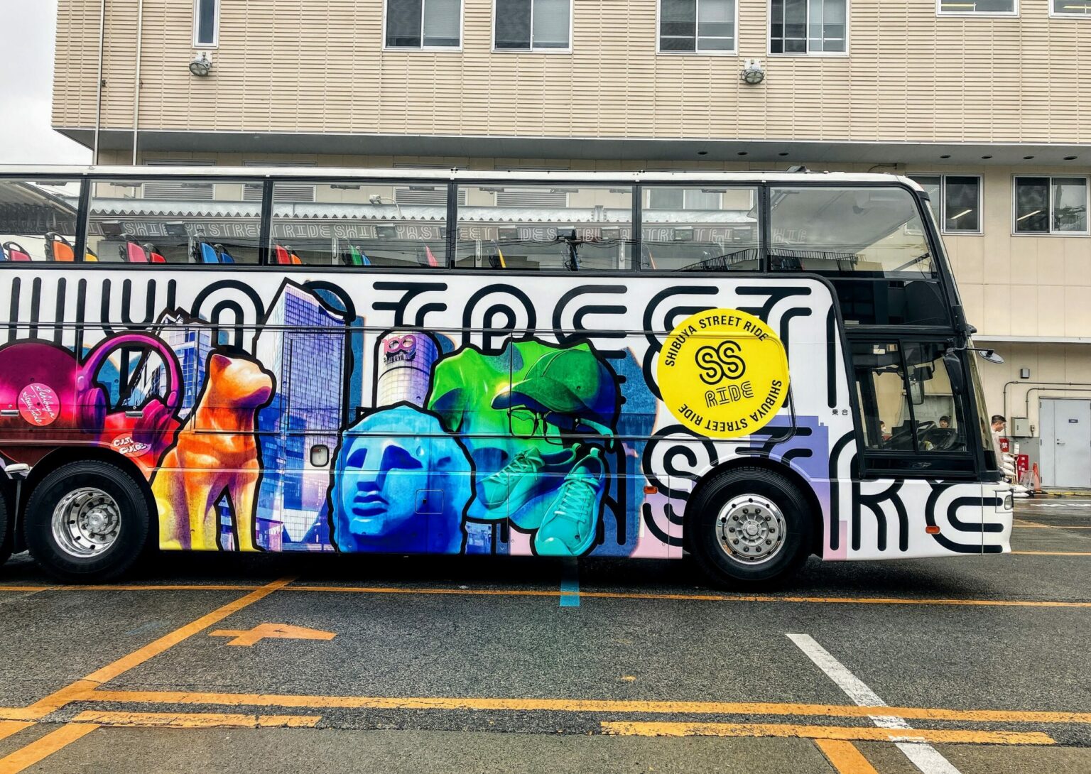 左面には「ストリートをつなぎ巡る」ことをイメージしたロゴデザインを、右面には渋谷を象徴するランドマークや音楽、ファッションのデザインをあしらっているのが特徴的。渋谷らしいカラフルなバスで、テンションを上げて観光を楽しめます♩