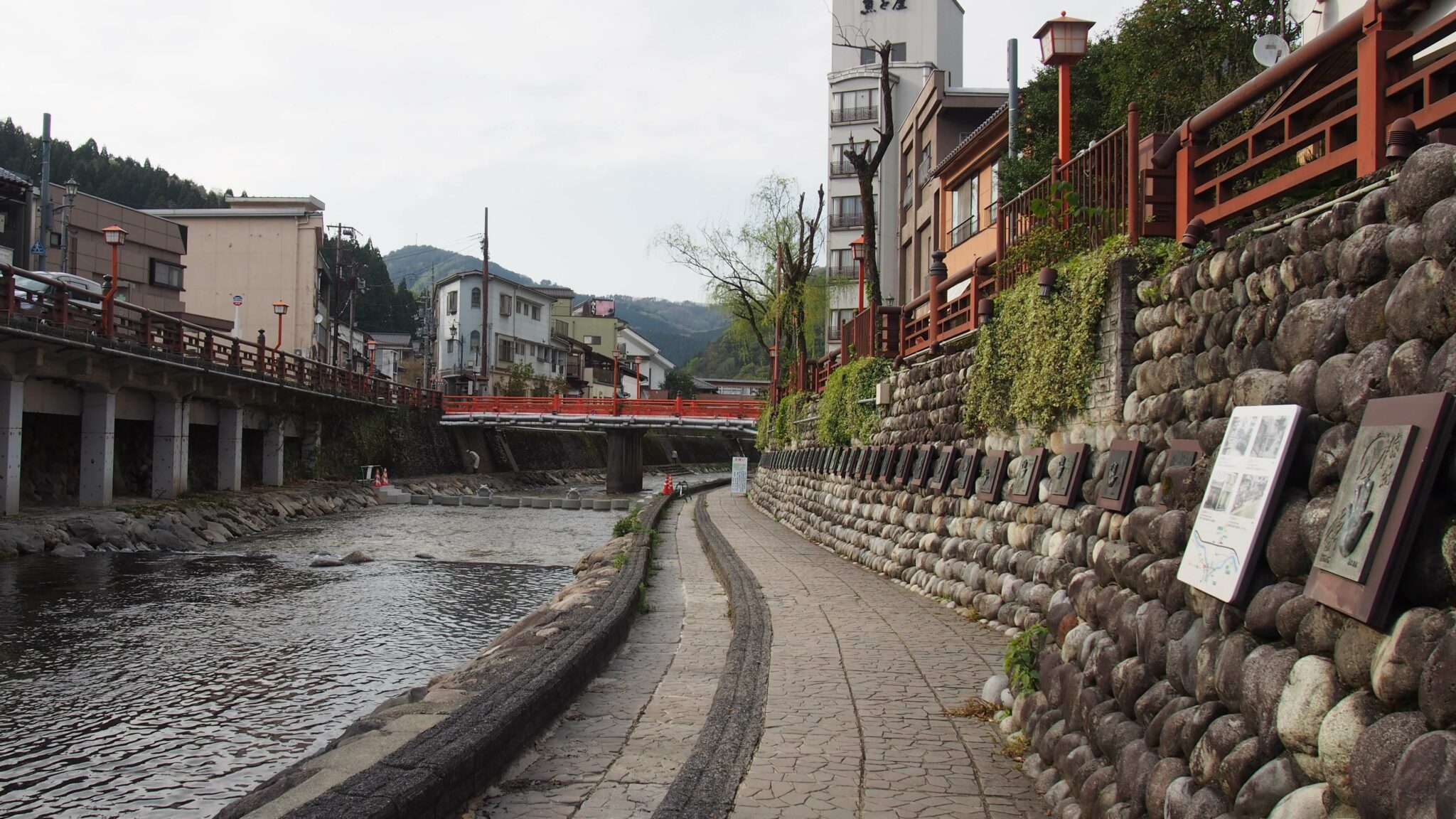 また、川のほうへ降りると天然かけ流しの足湯があります。春来川(はるきがわ)を眺めながら、旅の疲れを癒すのもいいですね〜。