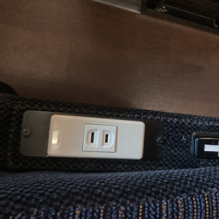 座席横には電源もあります。Wi-Fiも通っているのでストレスなく移動時間を過ごせそうです!