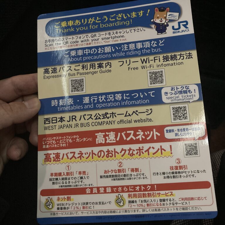 今回の旅行は「西日本JRバス」の「松山エクスプレス1号」(6時30分発)に乗車します。
