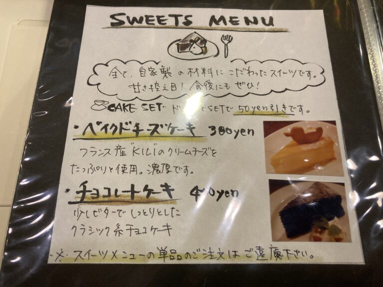 「アメリカンコーヒー(ホット)」と「ベイクドチーズケーキ」を注文します。