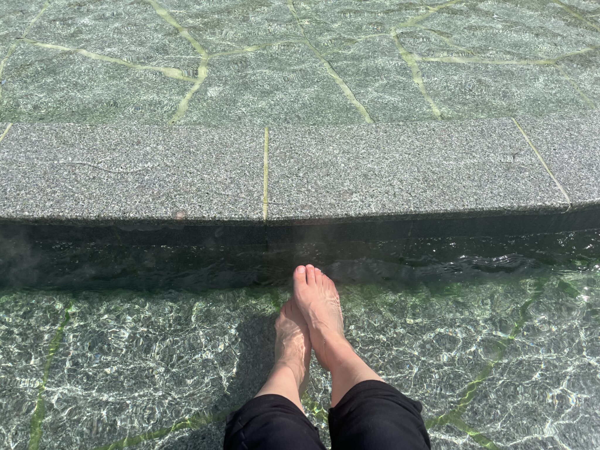 さっそく足湯体験しました!お湯は熱めですが、気持ちよく入れました!
