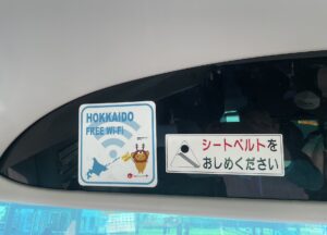 Wi-Fi完備、USB式電源も各座席ごとに備え付けられています。充電ケーブルはご持参くださいね。(釧路〜札幌を走るJRの特急は、Wi-Fi・座席電源の設備がありません)
