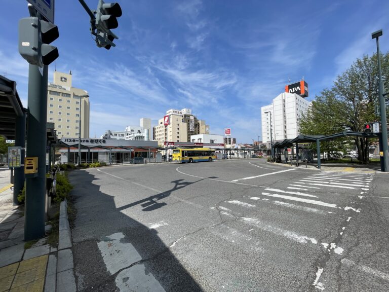広いバスターミナルが見えてきます。駅構内から段差も少なく、キャリーケースでも移動しやすいのが魅力です。列車からバスへの乗り継ぎもスムーズで、初めての方でも迷いにくい立地にあります。